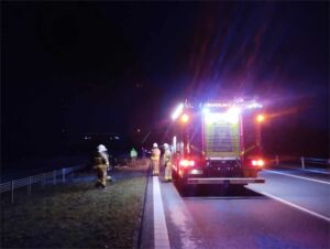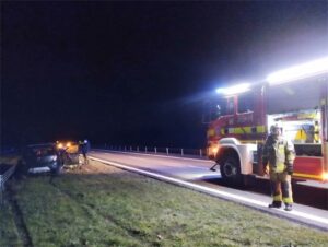 W dniu 25.10.2025 o godz. 04.32 SK KM PSP w Kielcach zadysponowało naszą jednostkę do zdarzenia drogowego na trasie S7 w miejscowości Tokarnia. Do działań wyjechał GBA-Rt 4,5/29,6 MAN TGM 18.320 319T14. Po dojeździe na miejscu zdarzenia stwierdzono, że auto osobowe wypadło z drogi i uderzyło w barierki. Kierowca pojazdu w momencie przyjazdu zastępów straży pożarnej przebywał już poza autem i był pod opieką ratowników ZRM. Działania straży pożarnej zabezpieczeniu miejsca zdarzenia i odłączeniu akumulatora w uszkodzonym samochodzie.